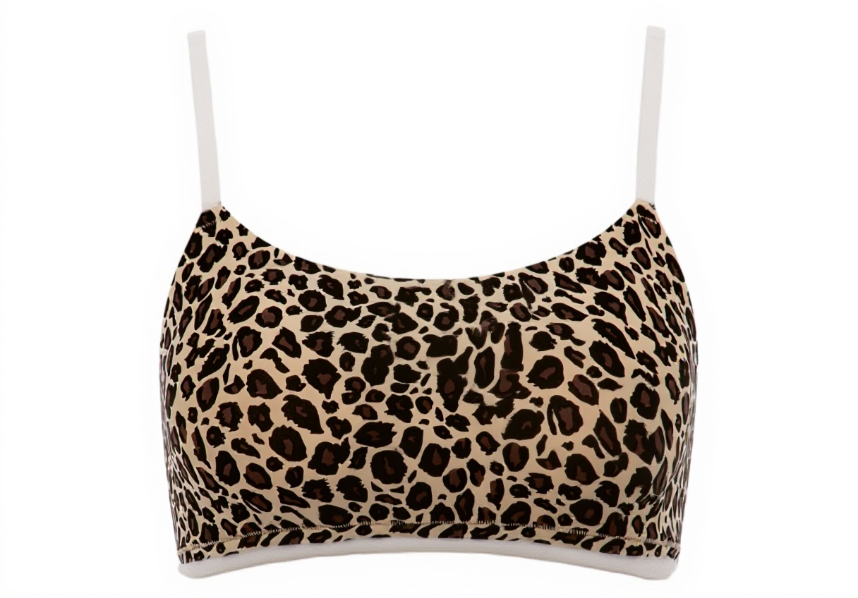 Erhältlich in der Größe M/L und der Farbe Leopard Nude, besteht das Bustier aus hochwertigem, dehnbarem Material mit doppelter Unterlage für zusätzlichen Halt. Die feinen, verstellbaren Träger verlaufen quer über den Rücken und ermöglichen eine individuelle Anpassung.